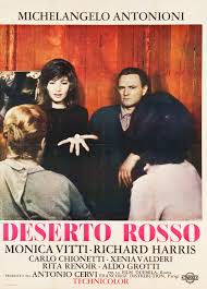 The correct title for this film is Il Deserto Rosso. This is a very haunting and enigmatic film. Superb acting from Monica Vitti and Richard Harris. This is Michelangelo Antonioni’s first colour feature, featuring colours of red, blue and grey. Expertly directed by Michelangelo Antonioni. This is a film about alienation and about being lost in the world. She finds herself disconnected from her husband and has no joy in life. It is about imagination and hallucination. When the film turns slightly red this symbolises freedom, hope and happiness. When blue this symbolises the uncertain future and the fears that accompany it. When grey this symbolises the emptiness and hopelessness of life. This film could be seen as one of the first films to highlight the damage to the environment caused by industrialisation. Modern life has turned the natural world into a desert while also turning peoples emotional lives into a desert. The characters in this film are incapable of feeling or of relating to each other. The great film critic Philip French once quoted this film as “A political film with anger seething beneath the seductively beautiful surface”.